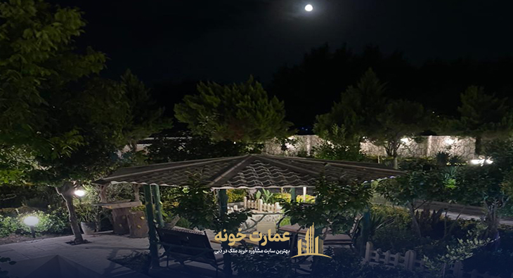 - متراژ: ۱۲۰۰ متر باغ سرسبز با درختان میوه